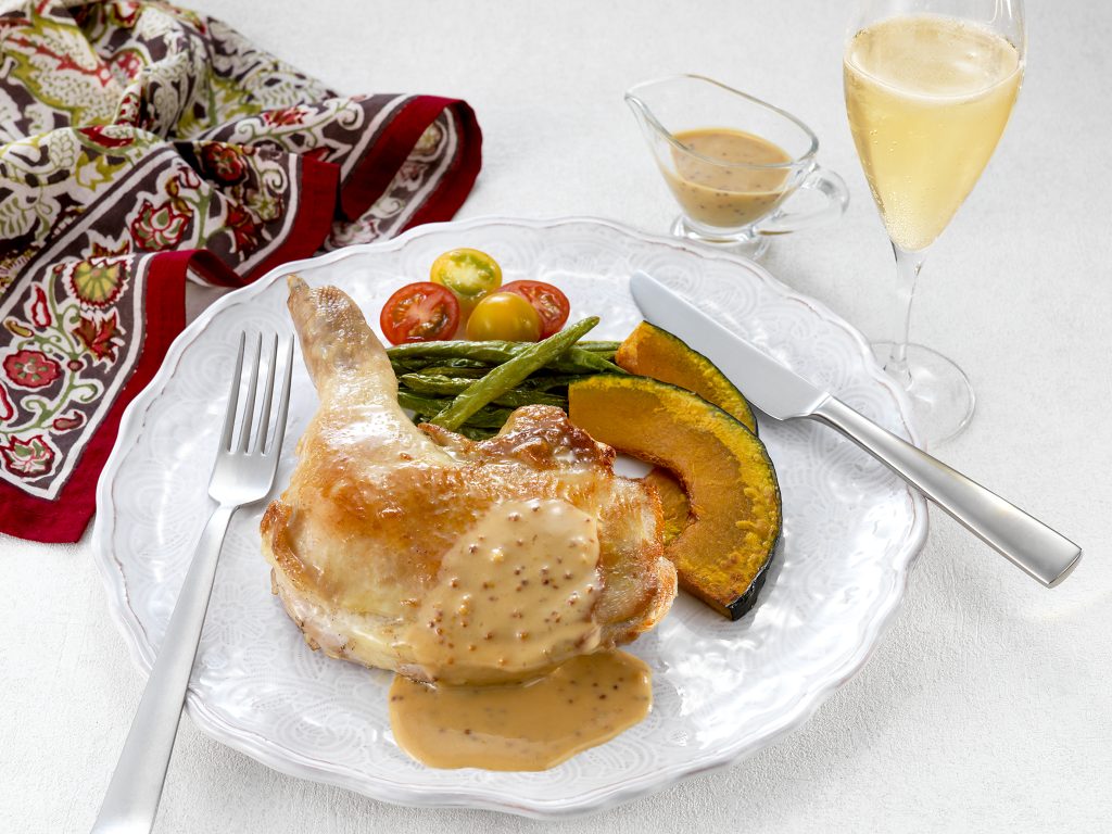 今月のレシピ(ローストチキンの味噌マスタードソース)