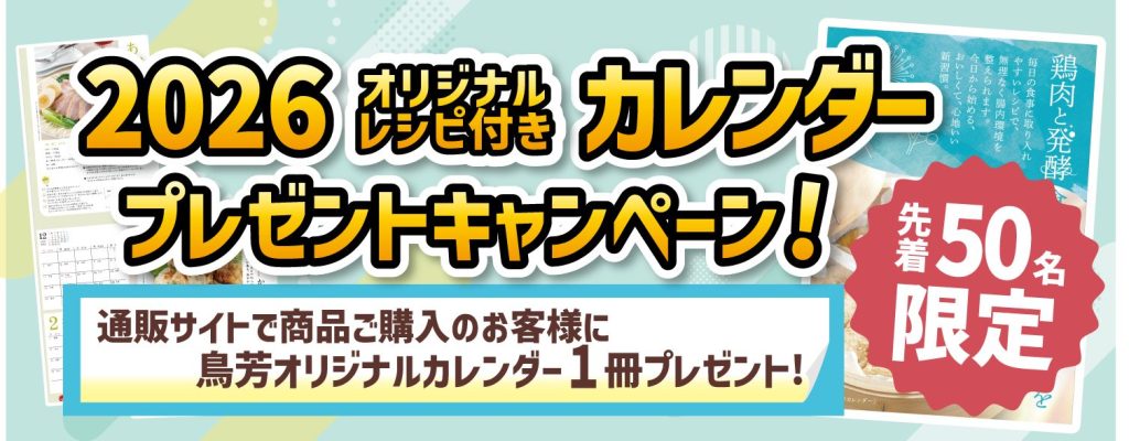 このたび、日頃の感謝を込めまして、鳥芳通販サイトでご注文いただいたお客様先着50名様に、オリジナルカレンダーをプレゼントいたします。